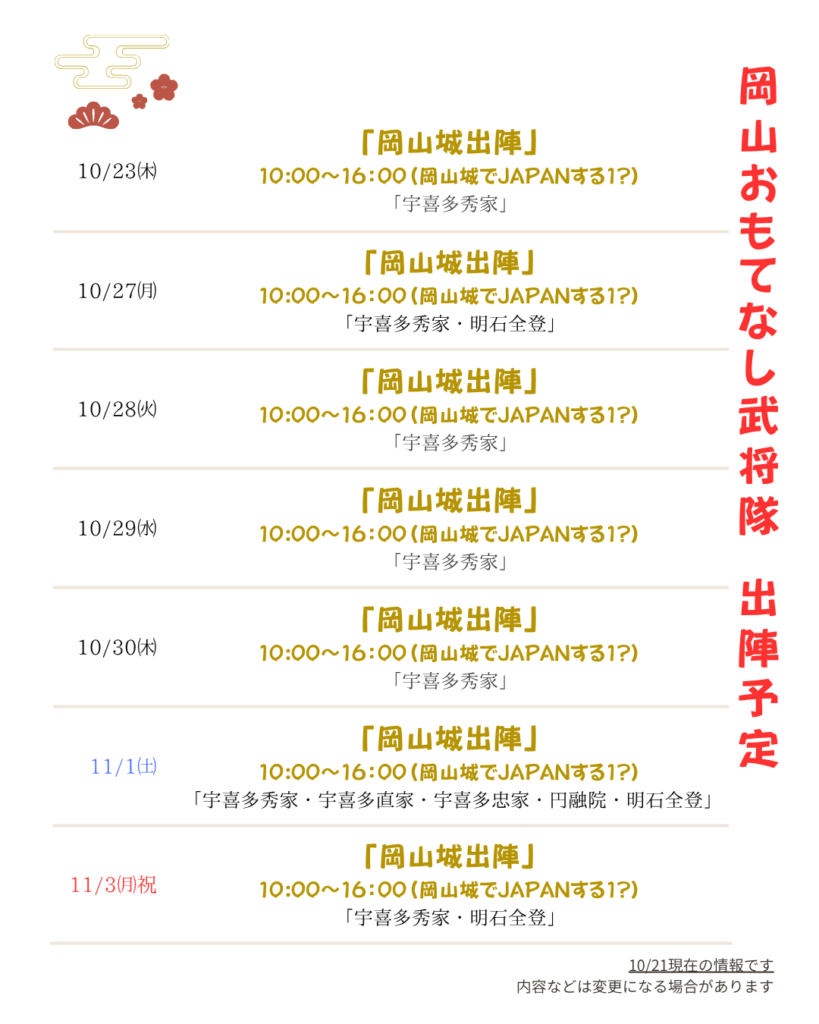 10月18日から岡山城天守前広場で実施中の「岡山城でJAPANする!?」。